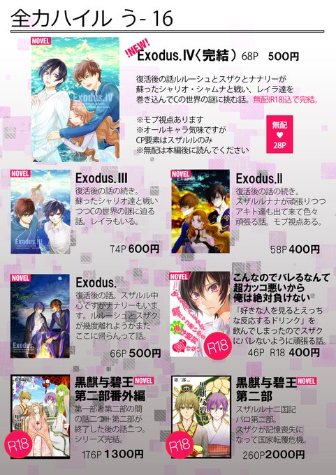 【12/1ギアスターボ14】全力ハイル「う16」Exodus4(完結)Cの世界に迫るルルーシュとスザクとナナリーとCCの戦い、無配も含めてですが完結です!あとスザルル。宜しくお願いします!! https://t.co/cNdChjPAyy