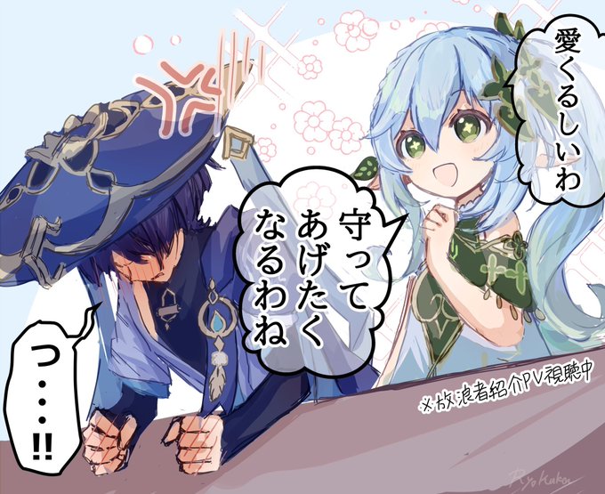 Wanderer-kun who wants to wake Nahida-chan up and Nahida-chan who just won't wake up.