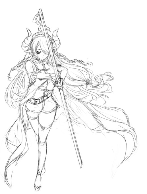I don't want to repost artwork so I just doodled her myself for reference: