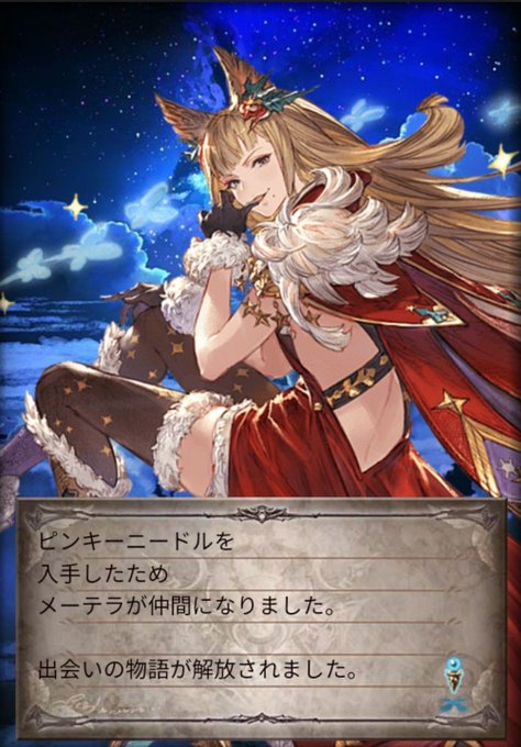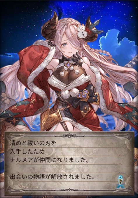 先日のグラブル200連ではクリスマスキャラがたくさん出ました~!ありがたや~~!ナルメアサンタさんかわいい(^^)クリスマス衣装みんなかわいい(^^)普段ガチャ回さないから無料はほんとありがたい(#^.^#)