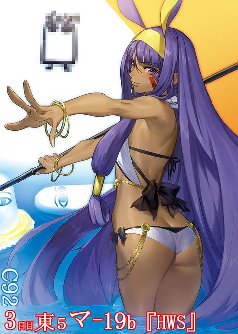 【FGO】夏コミ用水着ニトクリスさん!「公式で水着姿出ちゃったけど気にしないでいきませい!!」そして3日目は東マ19bのサークル『HWS』に来ませい! それから、すみすさん(@sumidolce)主催のFGO合同誌に私も一枚描かせて頂きました~。こちらもぜひ!! #FateGO