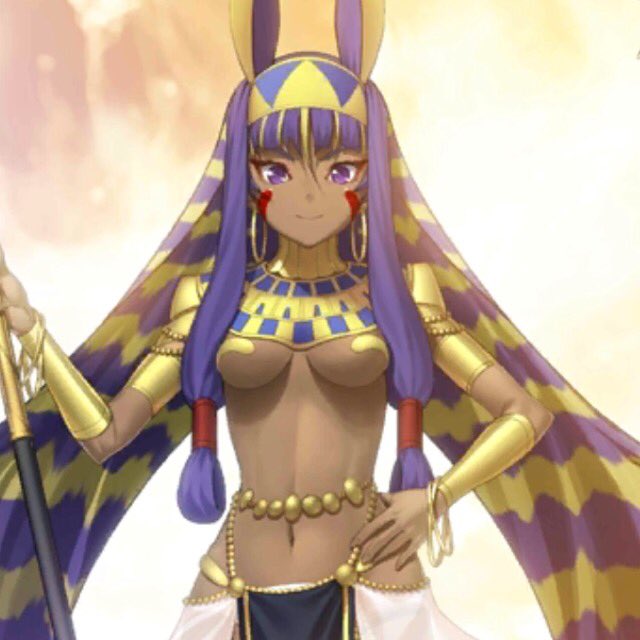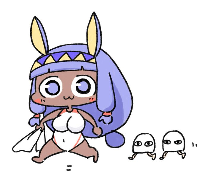 水着ニトクリス!逆に布面積増えてるニトちゃんかわかわ 1段階目の再臨絵はメジェド様仕様だと予想!それかこれで戦うのとかどうか #FGO