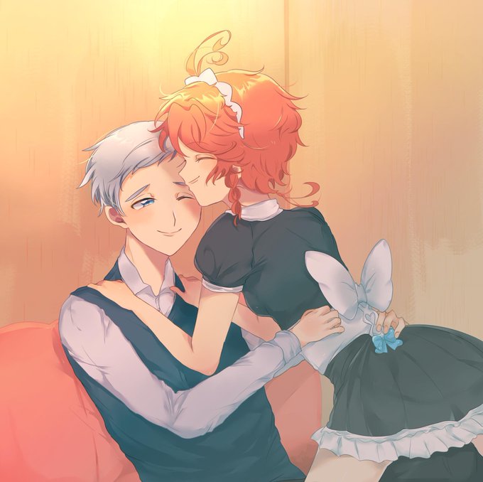 약네랜 엠마가 안 입어보던 종류의 옷(feat길다)을 입어봤을 때 노먼, 레이 두 사람의 반응을 그려보았다. 재업갤박용.