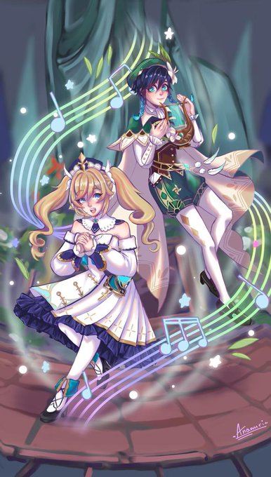 на чёрном фоне лучше всего смотрится #GenshinImpact #Genshin #Barbara #venti #genshinimpactfanart