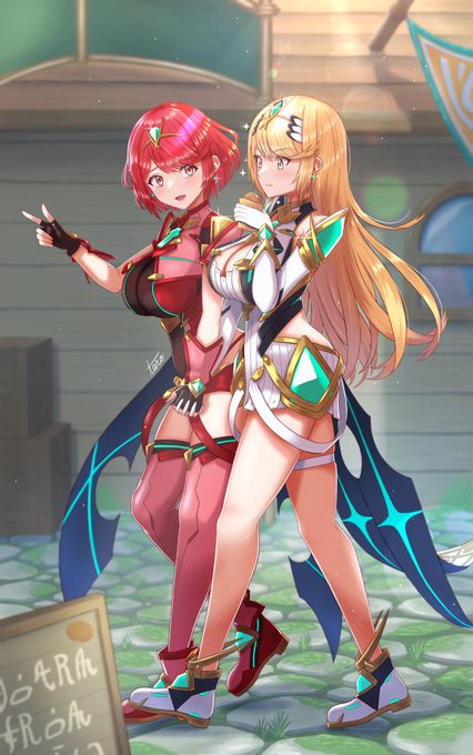 At home I always get lovely Pyra/Mythra art like this on my timeline, but when I’m outside in public I somehow always get Pyra/Mythra lewds 🙄