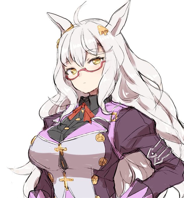 ビワハヤヒデのメガネはテンプル(ヒトだと耳にかける部分)が横に伸びてるけど、髪に隠れた部分で髪飾りと連動して固定されてる説を推したい。