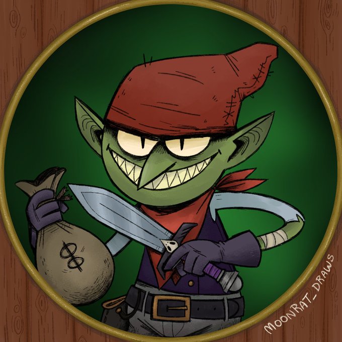 Hi, I'm Moonrat and I draw a lot of goblins and #DnD type stuff. I'm primarily a cartoon weirdo but I also sew and do various crafty bits and maybe I'll share those projects soon.