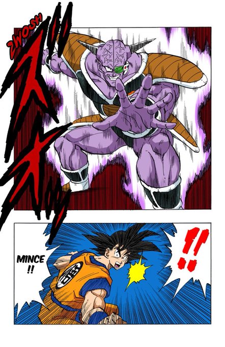 Déstabilisé par la puissance de Ginew, Goku reprend rapidement son assurance grâce à une analyse et un sang froid hors norme. A nouveau, les dialogues cinglants sont bien choisis.
