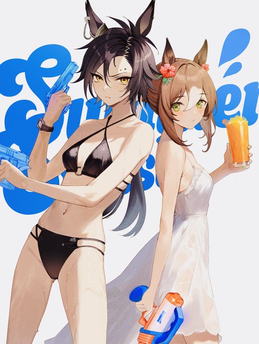 skebのご依頼でロイヤルな大人に成長した勝負服モチーフの水着を着用されたファインモーション殿下を描かせていただいております