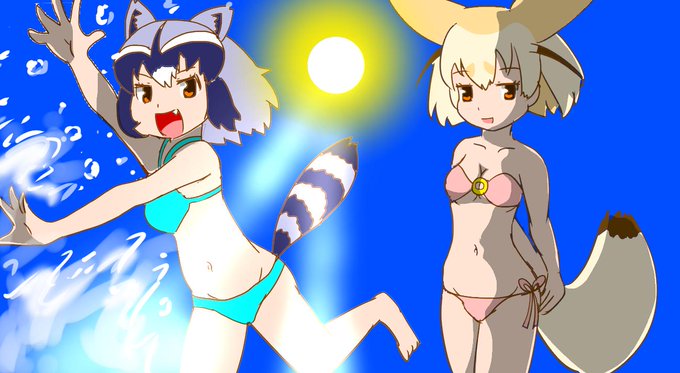 #けものフレンズ 何度も上げ直しすみません 久しぶりにフェネック描きました 最近スク水が流行ってるんですよね?(捏造)