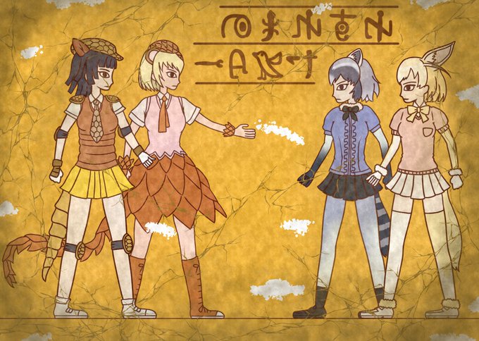 【壁画】依頼 アライグマとフェネック、オオセンザンコウとオオアルマジロ #けものフレンズ2 #カヴァン神話 #エジプト壁画風