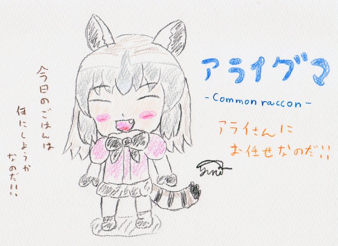 「アライさんほっぺたにしおむすびついてる」