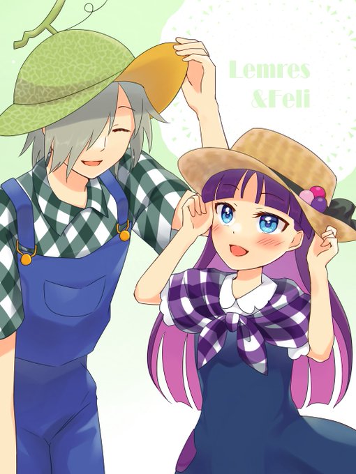 【#ぷよぷよ/レムフェリ】遅ればせながら、グラフアートカフェありがとうございました!の絵です。果物モチーフもギンガムチェックも大好きなので私得なお洋服でした🍈🍓💕
