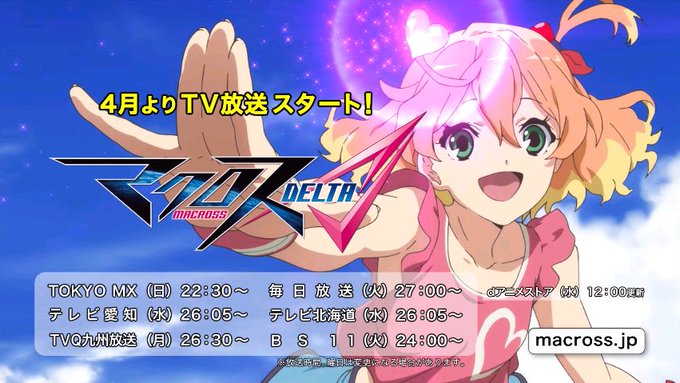 『マクロスΔ(デルタ)』テレビ放送がいよいよスタート!4/3(日)のTOKYO MXを皮切りに順次放送!ゴリゴリご覧くださいませ! https://t.co/hTRFAlhnTS #macross
