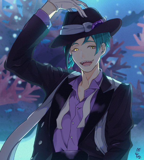 My very first Twisted Wonderland piece! Based on a screenshot I saw of Floyd saying he (I assume he's talking about Azul here) would make a better meal than the one he currently has.