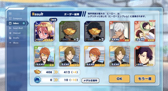 フレームの方も来てくれました☺️💞(70連の間に…。)兄弟のかわいいフレームが☆3で出やすい方なの嬉しいね!!