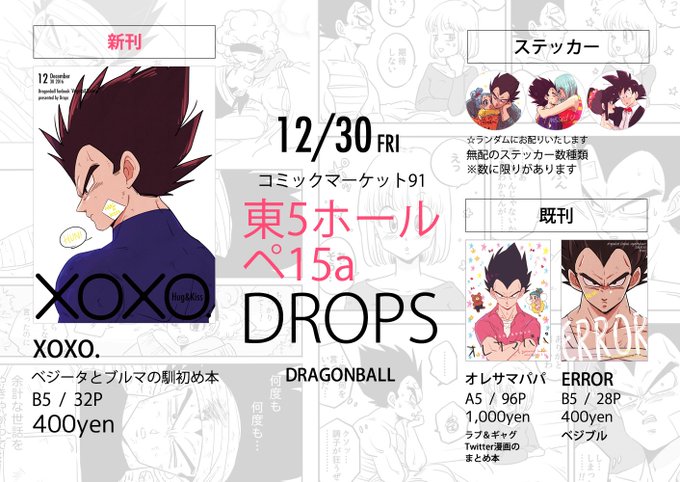 12月30日(金)サークル名:Drops【スペース:東5 ペ15a】宜しくお願いいたします!