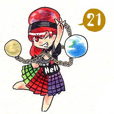 今日も更新!ヘカーティア・ラピスラズリ。担当は高菜しんのさん(@synno_takana)。地球や月、もう一つの地球、それを繋ぐ鎖などパーツがとても多いキャラです。色選びのバランス、表情参考になる事間違いなし! #コピック東方大全