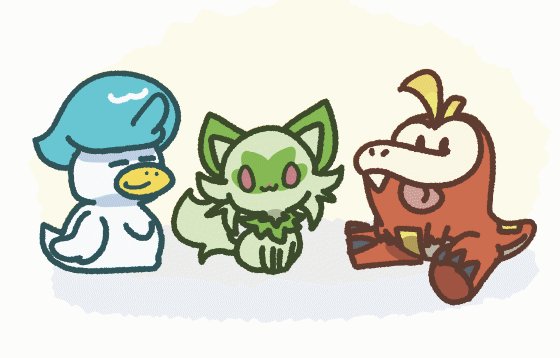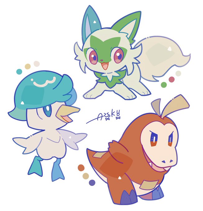Pokémon Scarlet and Pokémon Violet starter Pokemon artwork of Sprigatito, Fuecoco, and Quaxly. #Pokemon #ScarletViolet