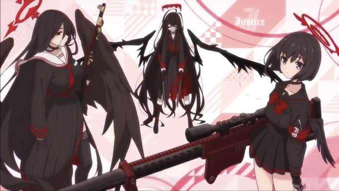 その4。 ◎トリニティ総合学園 ○正義実現委員会 ・マシロ ○放課後スイーツ部 ・アイリ ◎百鬼夜行連合学院 ○修行部 ・ツバキ ○陰陽部 ・チセ 終わり。