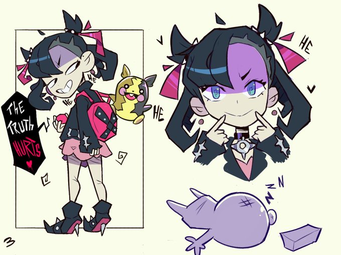 some posing practice that turned into a dumb, all over the place Marnie shitpost thing #PokemonSwordShield #fanart #illustration #goth #Nintendo
