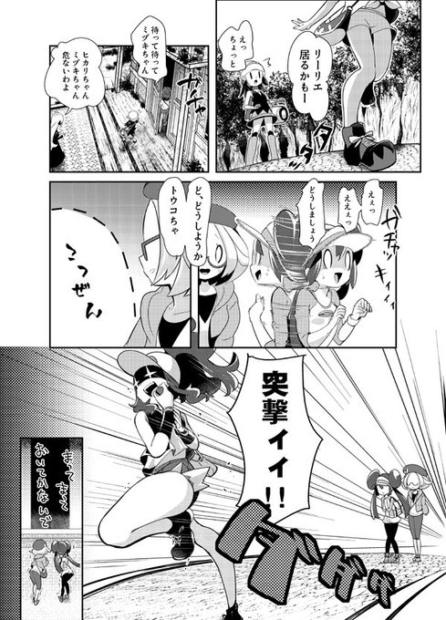 6/4のチャレ申し込みました~ シロナチャンプがトウコちゃんとメイちゃんとミヅキちゃんを連れてシンオウに帰ってきてヒカリちゃんを嫉妬させてなんやかんやあって森の洋館に行く百合ギャグ本を新刊にしようと頑張っています(2~3枚目まで出来てるページのサンプル)
