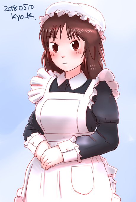 #ガルパン版深夜のお絵描き60分一本勝負 #ガルパン版深夜のお絵描き60分一本勝負_20180510 お題「ムラカミ」メイドの日らしいので。なんとなく不愛想だけどよく働きそうなメイドになった気がします。