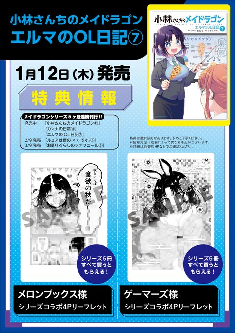 【💡お知らせ】1/12(木)に『小林さんちのメイドラゴン エルマのOL日記』7巻が発売です!