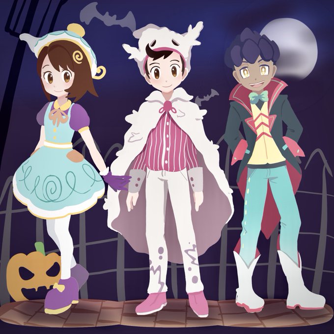 Since it’s Halloween season I decided to design some halloween outfits for MCs & rivals for each region, but only designing these three took a long time 😫 Now I’m thinking of scrapping the idea… #pokemonvictor #pokemongloria #pokemonhop #pokemonfanart