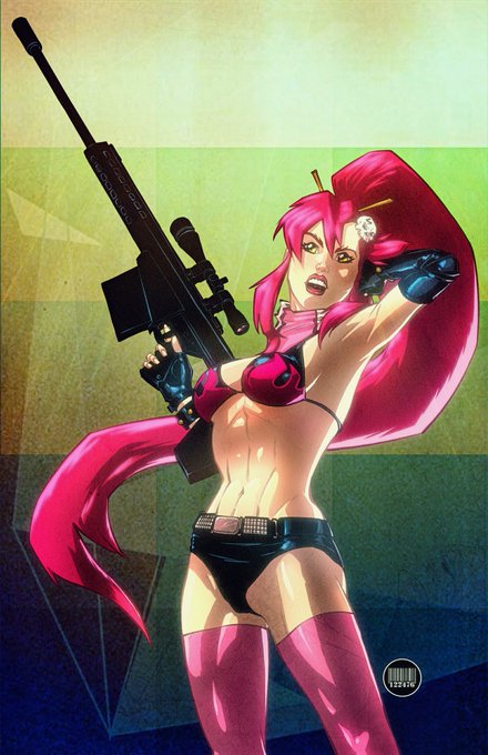 Here's Yoko Littner holding her long sniper #rifle that doesn't look finished.
