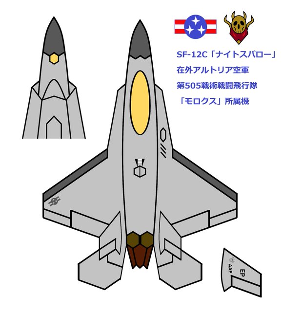 前作『月夜に雀が鳴いたら』の主人公機・SF-12C「ジェスター/ナイトスパロー」と、敵機として登場したJaD-21「ダストロ」も作りました。それぞれF-16 とグリペンをステルス化したイメージです♪