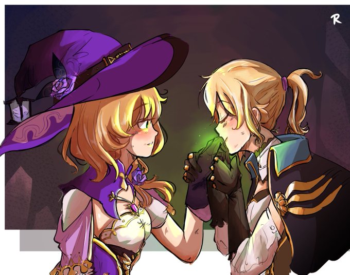 A WIP of my favorite witches !! Lisa from Genshin Impact, and Latte Cookie from Cookie Run: Kingdom! When will I finish this :'))