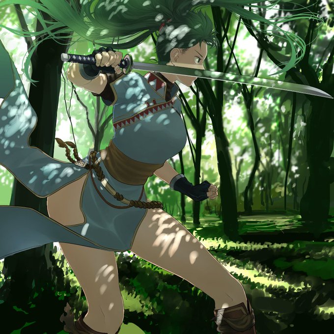 KW 武器:片手剣/ポニーテール・植物・青