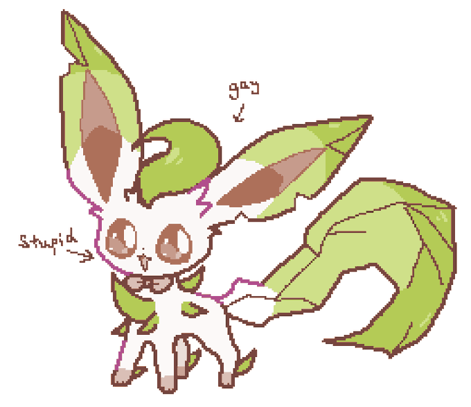 me and my friends' eeveelution sonas, im leafeon @smallhamsters vaporeon, @jezebel_remedy flareon