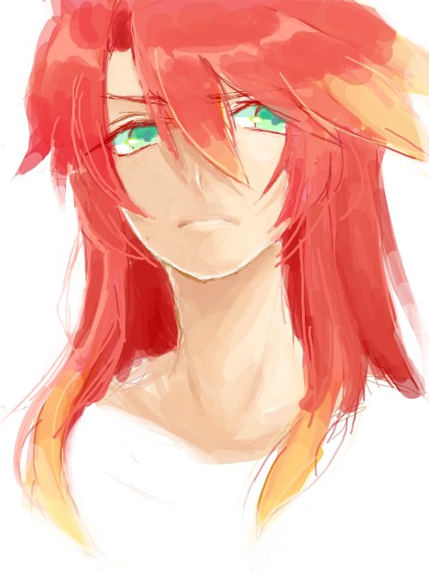 勢い余って描いてしまった断髪ルーク。決意も新たに旅立つ凛々しい感じにしようと思ってついでに加工したらなんか、し、死んでそうに…あれ…?