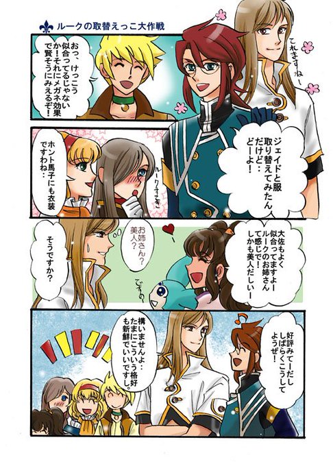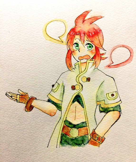 アビスに嵌ってすぐの頃描いた漫画・・・なつかしいなぁ(*´Д`)この頃はゲーム絵にちょっとでも似せて描こうとしてたんだな^^色まで塗ったりしてて我ながらすごいぜよ