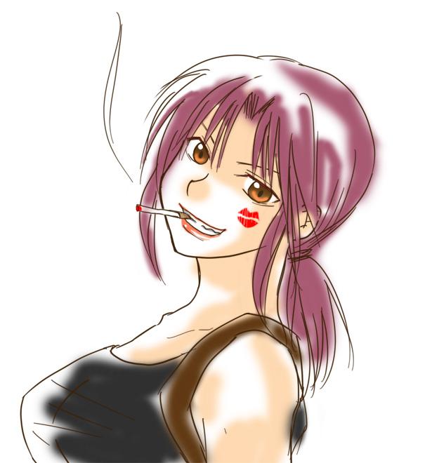 ロックさん描きたかった…。ロック誕生日プレゼントをいつ渡すか悩むレヴィさんのつもり。タンクトップに色つけるの楽しかった。 #ブラクラ版深夜の真剣お絵描き60分一本勝負