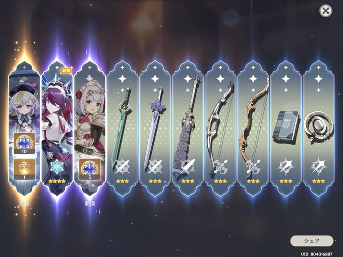 とりあえず確保したかったタルタリヤ1体とロサリアさん2凸達成できたので撤退!ほんとはタルタリヤ1凸したいけどね~、今回は高望みしない方向で( ˘ω˘ ) ちなみにバーバラは5凸になった。