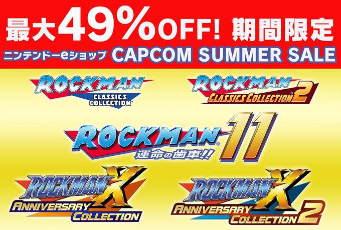【セール8月14日まで!】「CAPCOM SUMMER SALE」開催中!Nintendo Switchとニンテンドー3DSタイトルのロックマンシリーズのダウンロード版が最大49%OFFでSALE中!『ロックマン11 運命の歯車!!』も対象です!8月14日までの期間限定ですのでお早めに!詳しくは→ https://t.co/IuOgfvKu7i