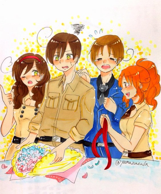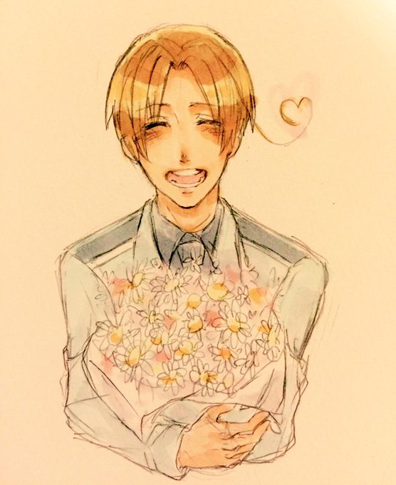 【遅刻組】:くるん兄弟(フェリシアーノとロヴィーノ)で【花束】描きましたっ #APHコンビ版深夜のお絵描き60分一本勝負 ひまさん、Buon Compleanno!♥