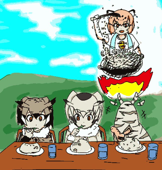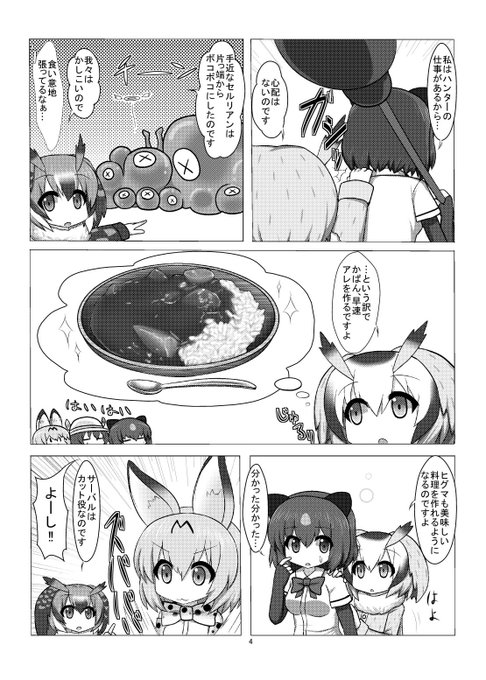 フレンズが皆で協力して料理をしたり、パーティの準備をする漫画が出来ました。