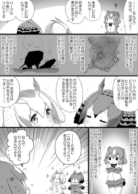 前回(3-4枚目)の、フレンズたちがどったんばったん試行錯誤するお話です