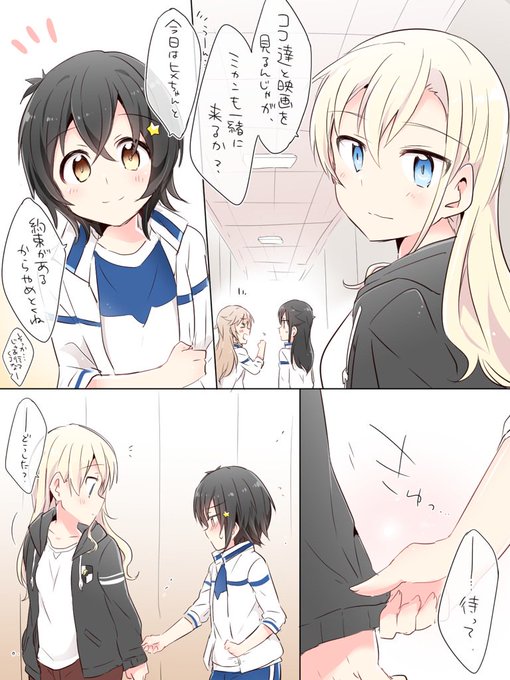 結局横須賀女子海洋の制服を着ることになってサイズを測られている時にドキドキしてしまったのが悔しいミーナさんと気付いてないミカンちゃんのミーミカ