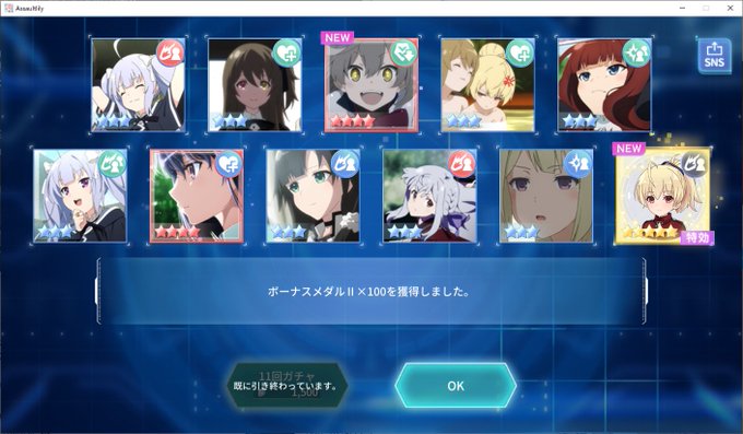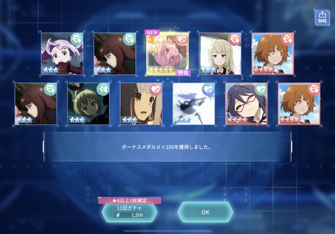 ラスバレの新しいガチャ、思い切って引いてみたら、 40連で、星5を3枚抜き、回復きました~! #ラスバレ