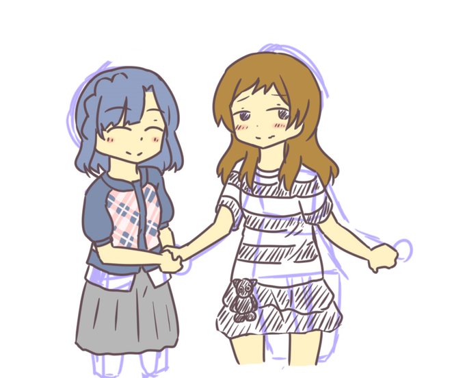 満面の笑顔で志保の手を両手で握る七尾百合子とそれを満更でもない照れた表情で返している北沢志保