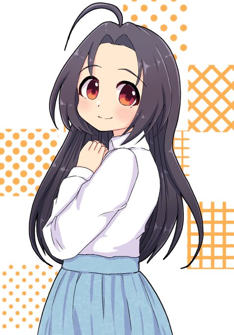 im sorry but this to date is still one of the greatest outfit designs idolm@ster has ever made. yes im including deresute SSRs its right up there with the best of them. the colours, the print, the structure and design, its so full of retro power and simple but sophisticated