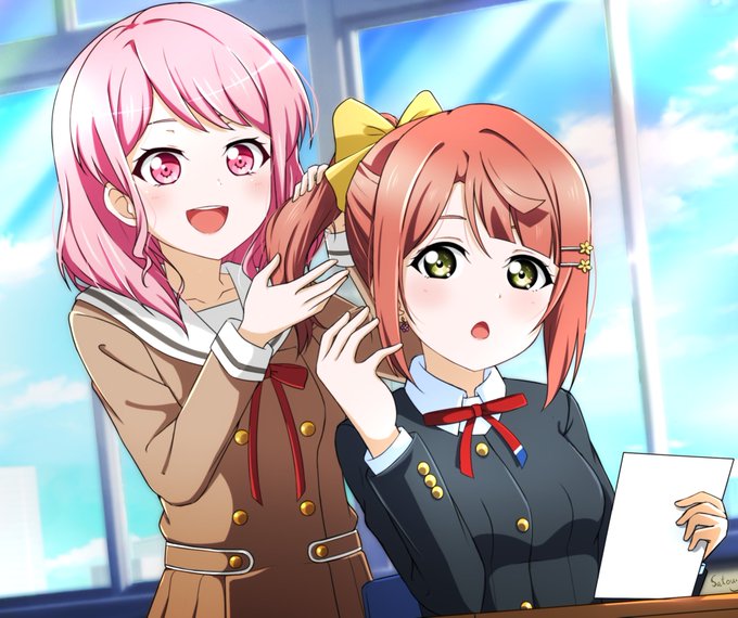 The second character with pink hair is Aya Maruyama from Bandori !!