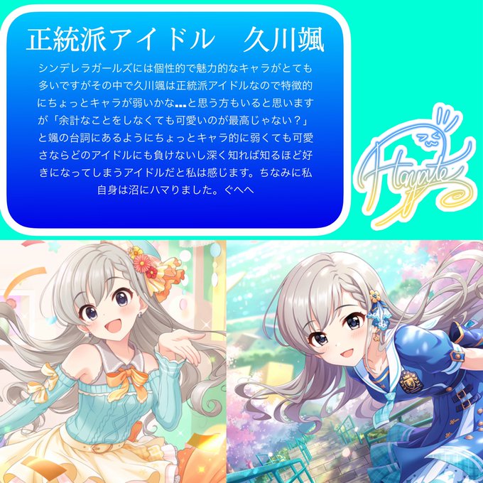 あまり大きな声では言えないんですけど、デレマスの久川姉妹って私が人生で初めてやったエロゲのキャラに似すぎててめっっっっちゃ推せるんですよね。既視感が消えないと思ったら、やっぱりなんか似てた。