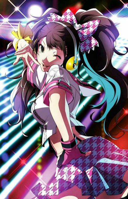 The second Miku of the day is Rise Kujikawa from Persona 4! She fits the hairstyle and age criteria! And she fits all the secondary criteria besides being an android and being accosiated with the future!