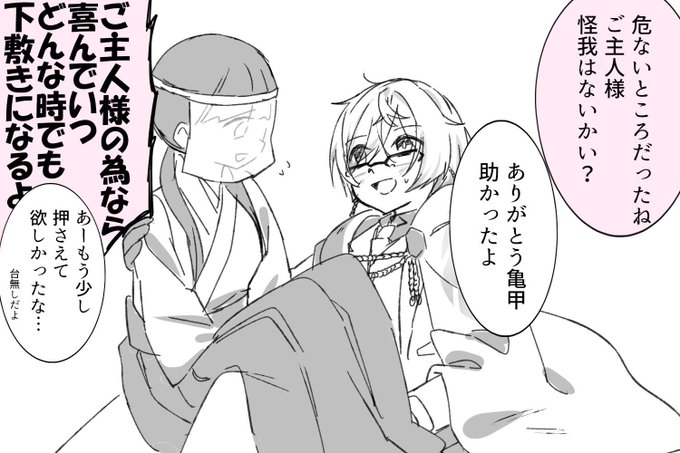 「いつも審神者の前だとずっと微笑んで四六時中色々求めてくるんだけど、不意に真顔になってる亀甲ちゃんもとてもいいよね」という落書きです、おはようございます